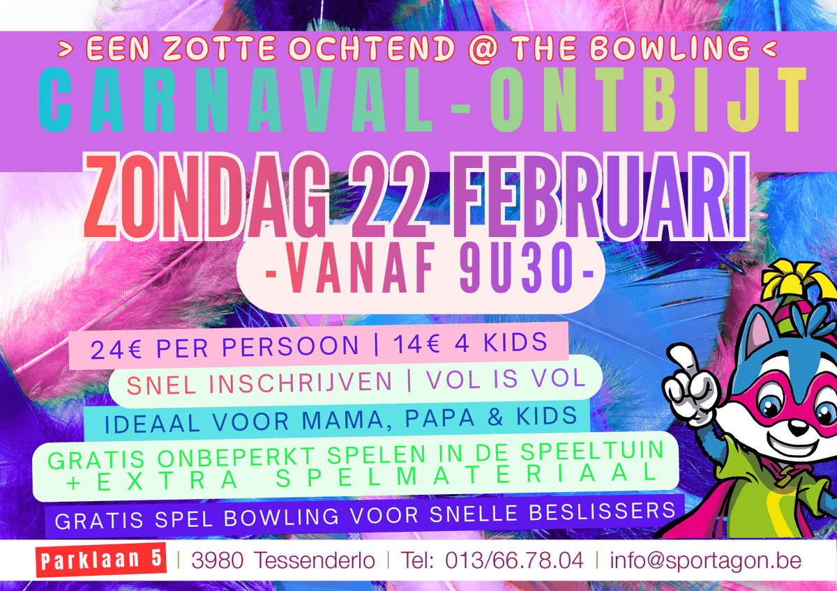CARNAVAL-ONTBIJT @ SPORTAGONÉvènement par SPORTAGON Multicenter, le dimanche, février 22 2026 |